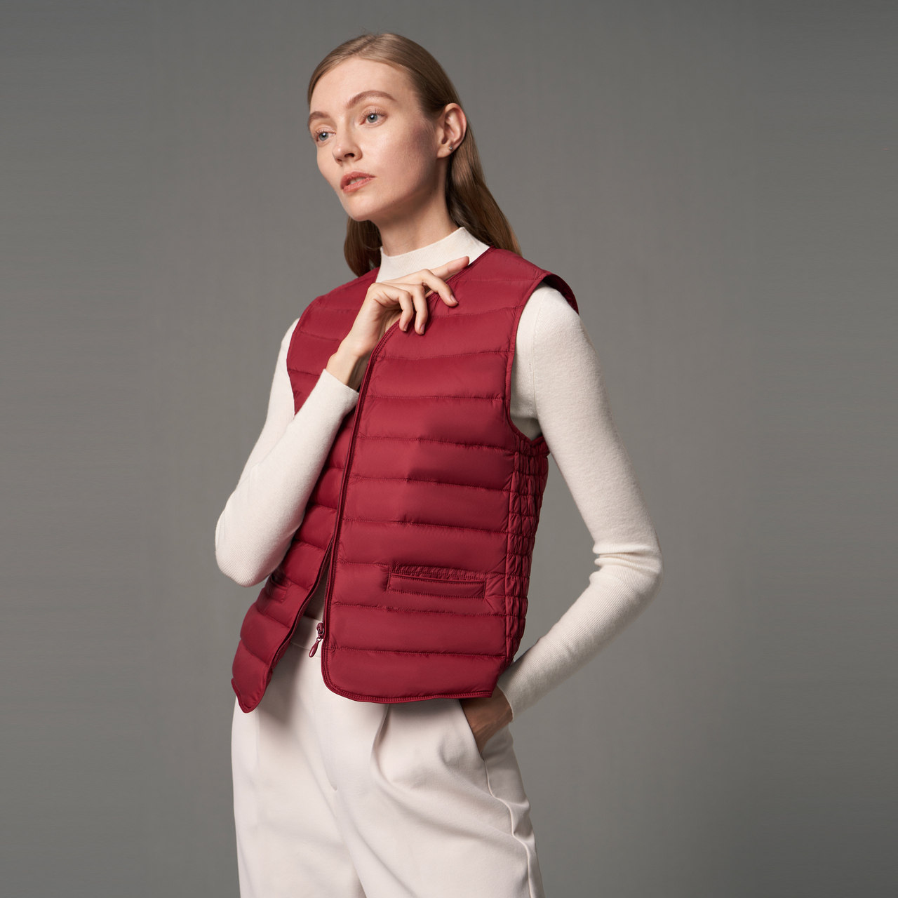 Bourgendon female short Warm Vest Light Slim inside Wearing Kan Shoulder 100 lap down Neri waistcoat