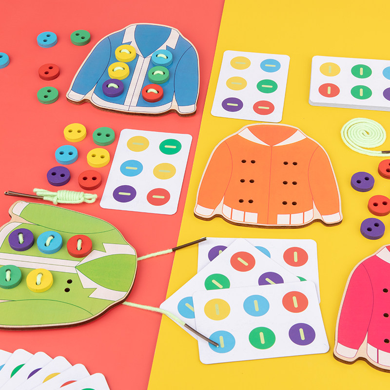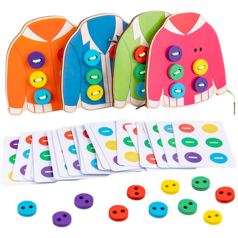 Focus on toy clothes button puzzle game early teaching children 3 years old children training 4 color cognitive table tour