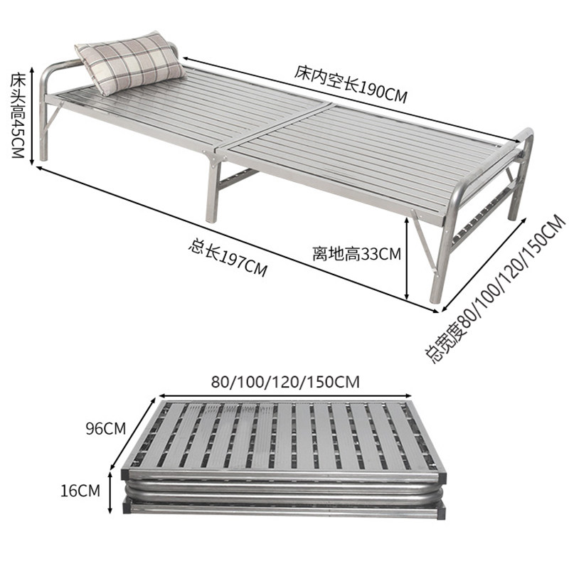 Stainless steel folding bed home office lunch break nap bed 0 8 m 1 m 1 2 m 1 5 m single double bed frame