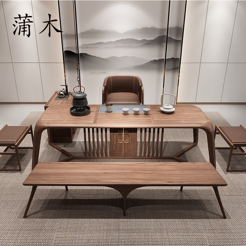New Chinese style solid wood tea table Zen simple tea table tea table combination tea room office reception Kung Fu tea furniture customization