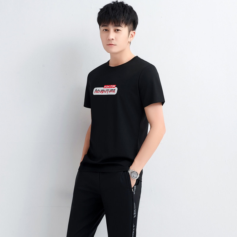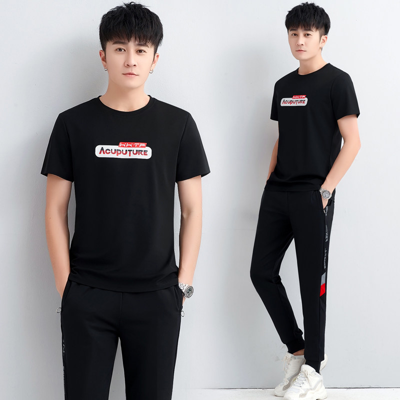 Sports suit men's summer 2021 handsome casual fashion tide brand suit loose short-sleeved trousers summer suit men