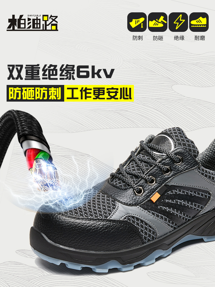 Labor insurance shoes men's summer breathable lightweight deodorant construction site shoes anti-smashing anti-puncture safety shoes electrician insulation shoes 6kv