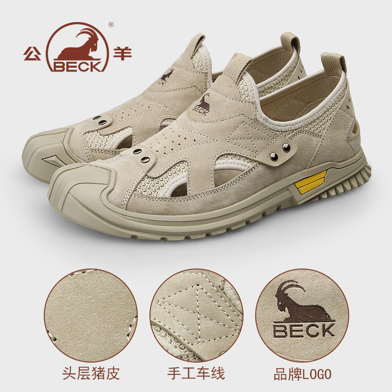 Public Sheep sandals Male genuine leather 2022 New men's cool leather shoes genuine leather Summer breathable outwear men's beach shoes