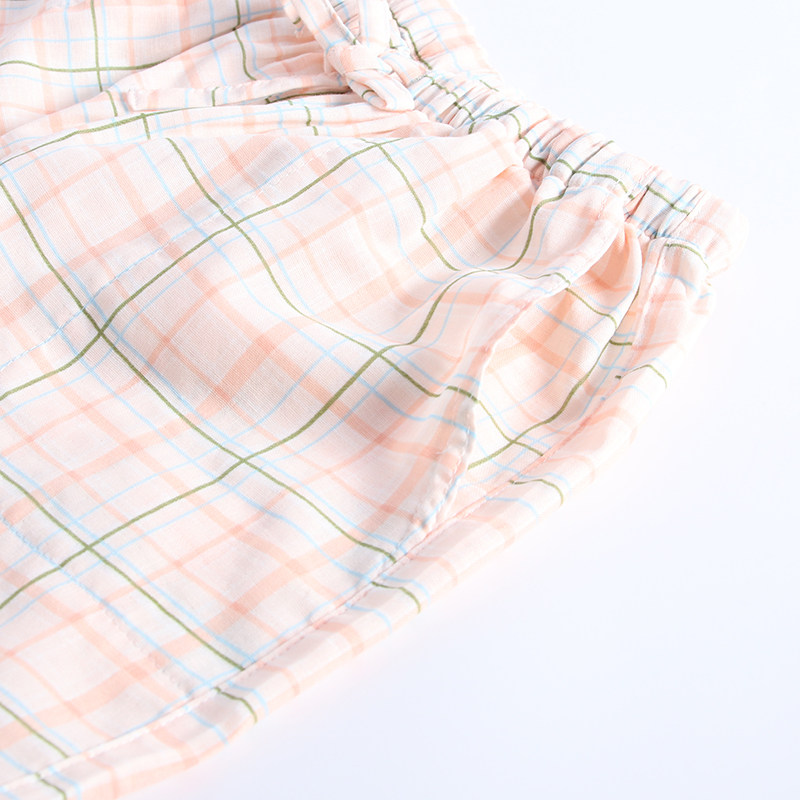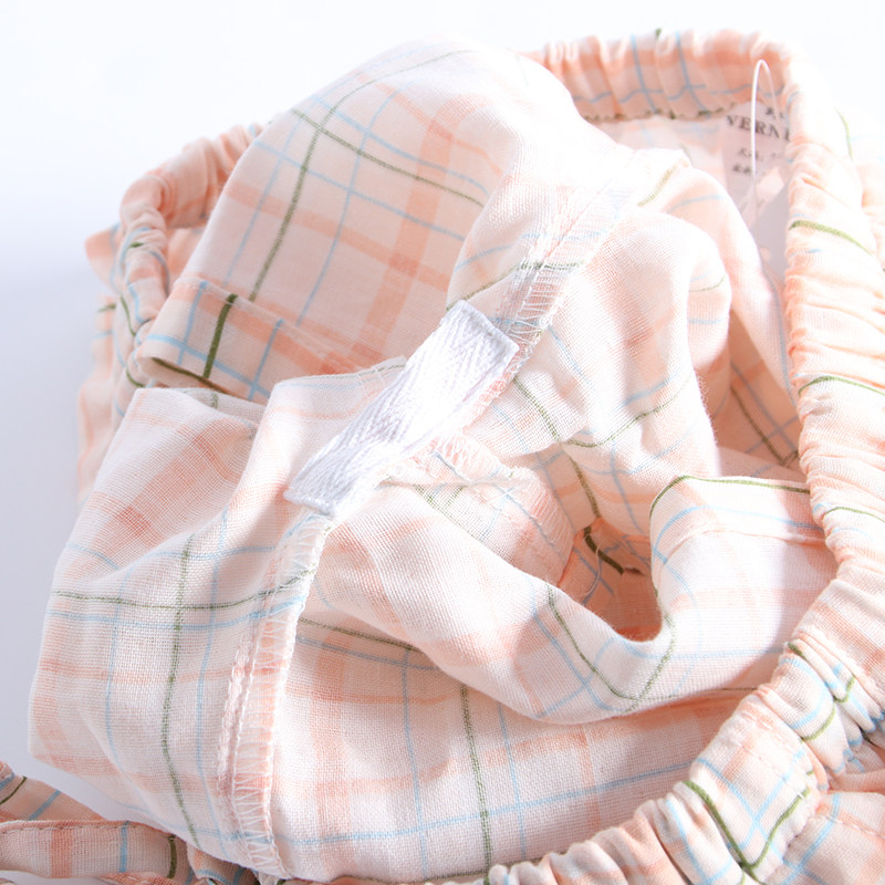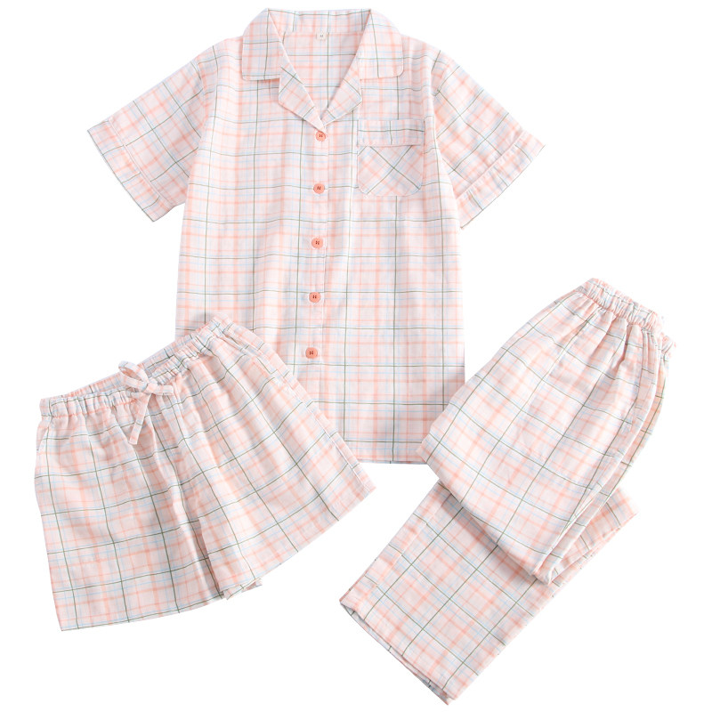 Three sets of sleepwear women Summer thin Pure Cotton Cloth Short Sleeves Shorts Long Pants Day Series Plaid Home Suit Suit