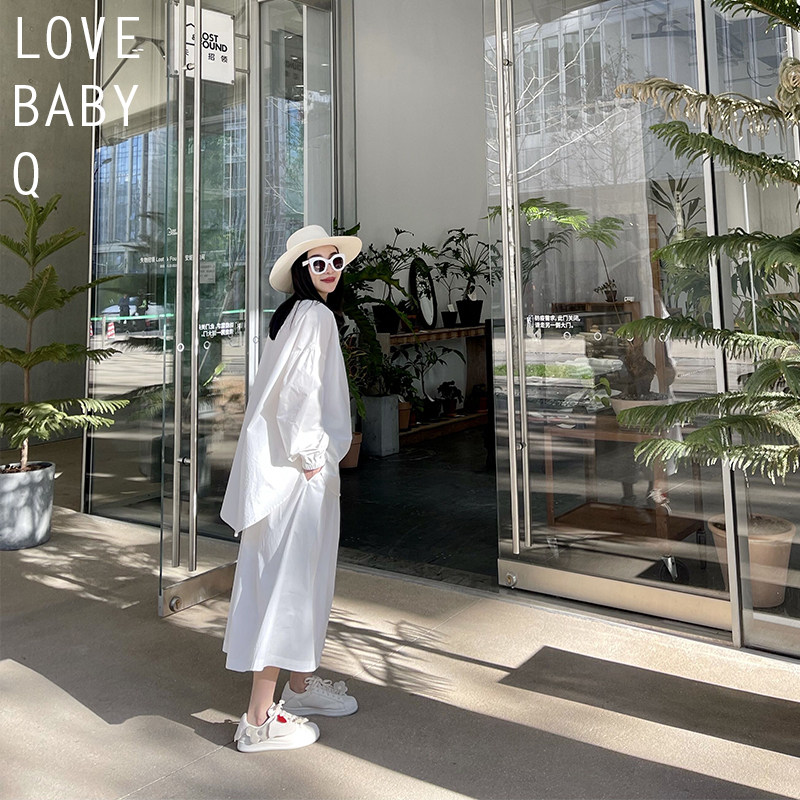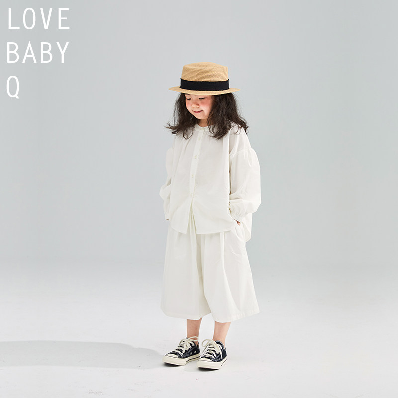 LBQ original parent-child spring new pint white clear and extremely minimalist design senses shirt-style foreign pants suit parent-child
