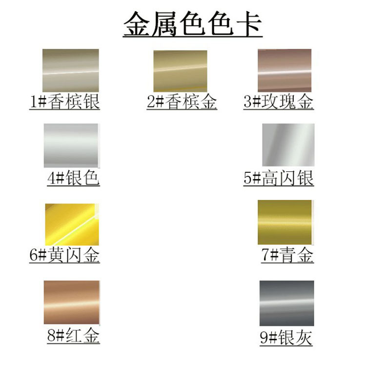 01#Champagne Silver02#Champagne Gold03#Rose Gold04#Silver05#High Flash Silver06#Yellow Flash Gold07#Qingjin08#Red Gold09#Silver Gray Protective Bright Oil 9 Pre-adjusted Paint Moulds