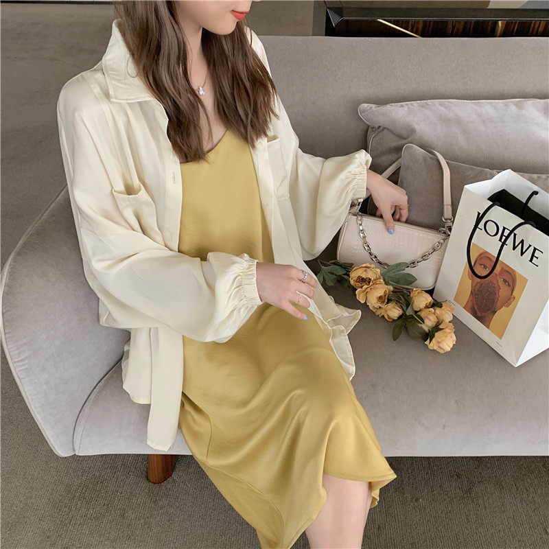 Large - yard women's clothing in spring 2023 new French sun - protective shirt fat sister shades thin hanging dress suit