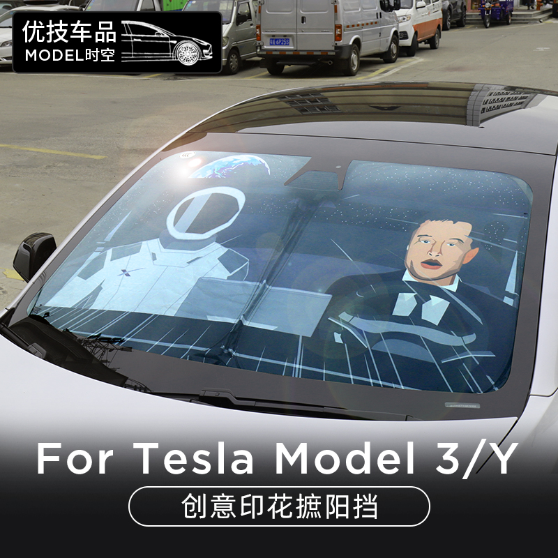 Suitable for Tesla model 3 sunscreen sunscreen shield personality print Musk model Y accessories retrofit