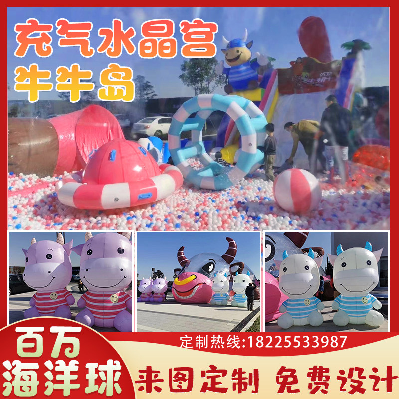 Inflatable transparent pink pig million ocean ball park Crystal Palace large tent panda pink pig whale Fish Island