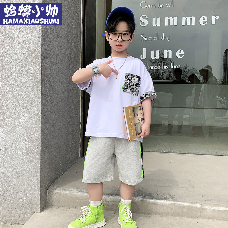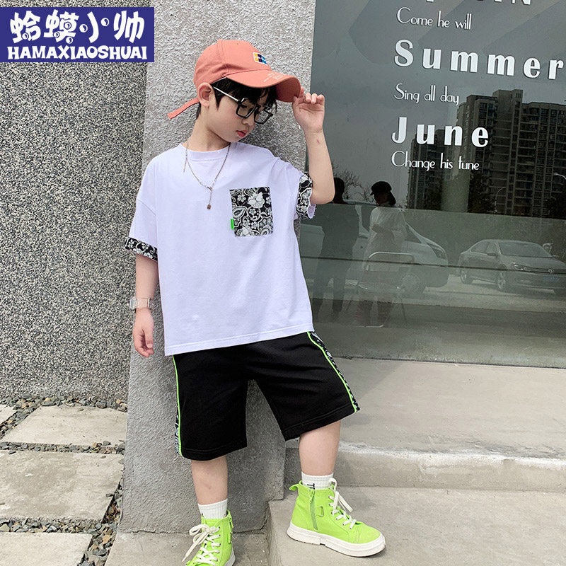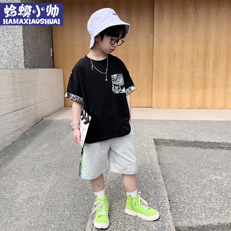 Boy Suit Summer 2022 New Trendy Handsome Boy Personality Printed Short Sleeve Suit CUHK Boy Two Sets