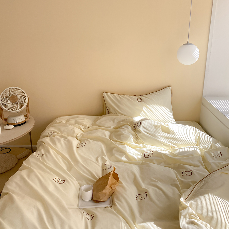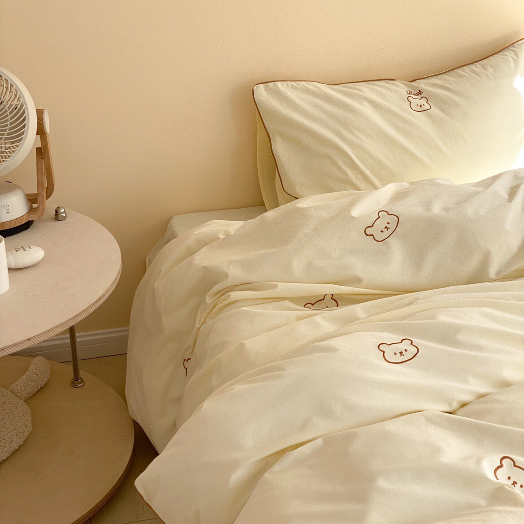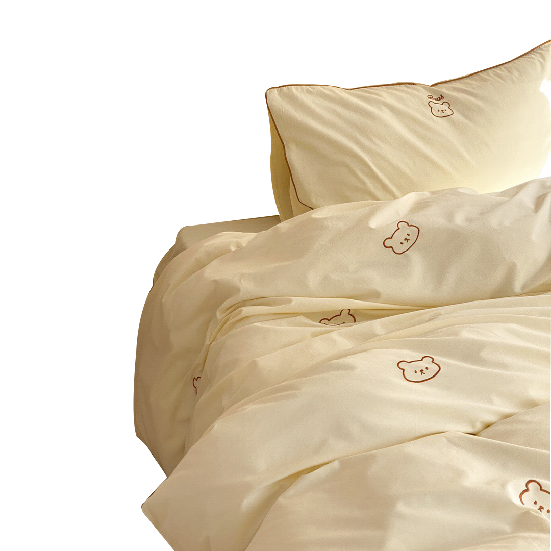 (Rich Mountain Strawberry) Small Fresh All Cotton Washed Cotton Small Bear Embroidery Four Sets Male main wind pure cotton sheet quilt cover