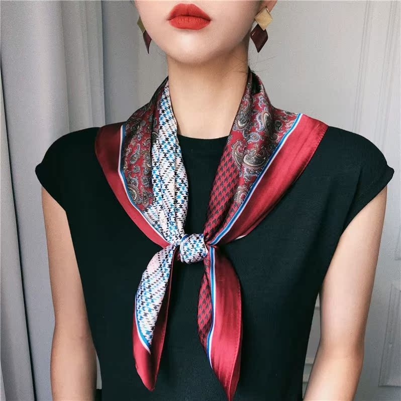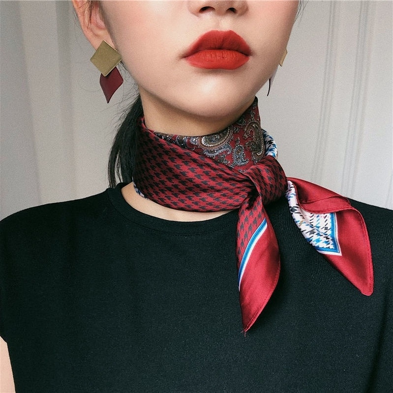 Literary and artistic young women white-collar collocation work wear small square scarf silk scarf female net red Douyin stewardess with the same ins elements