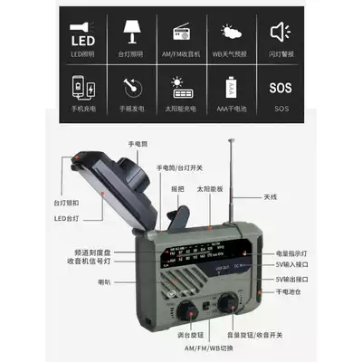 Emergency lighting hand cranked power generation radio solar charger outdoor rescue multi-function disaster prevention flashlight