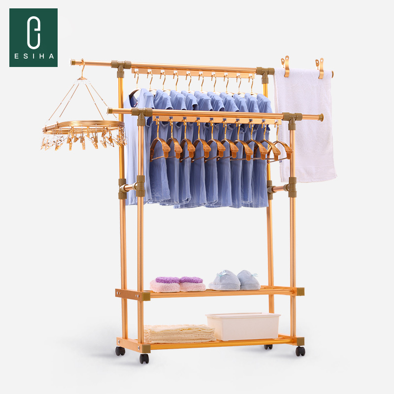 Clothes hanger floor-to-ceiling double-pole home balcony telescopic clothes hanger clothes hanger mobile strong bedroom cool hanger