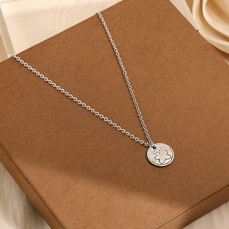 (End) Bear Round Card Necklace Female Earth Cool Steam Wave Couple Bungee Tide Boy Cold Wind Cute Coin Pendant