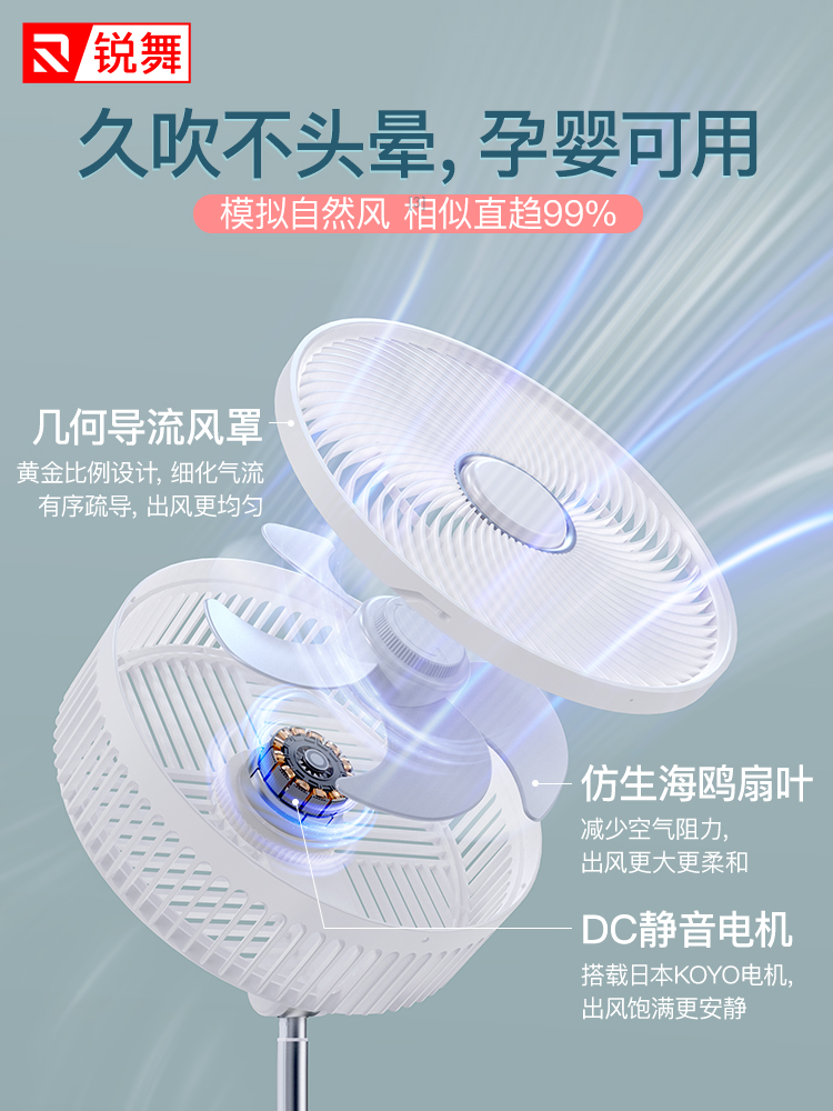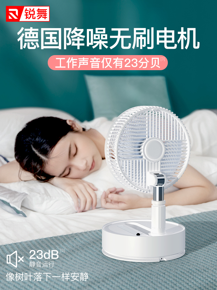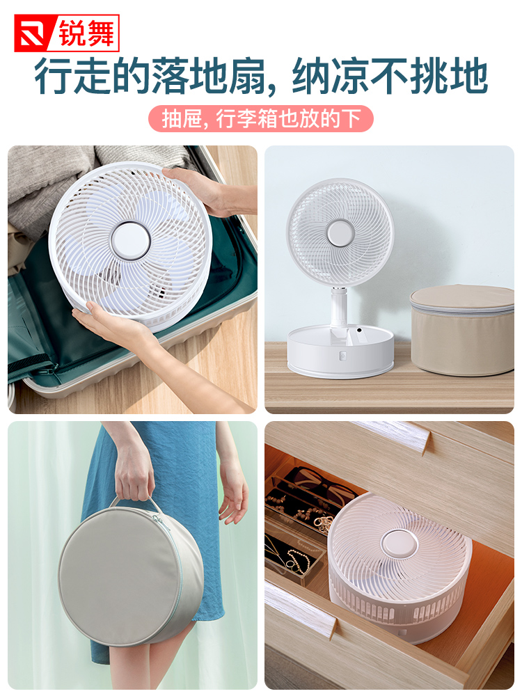 Rave folding electric fan landing home mute desktop strong wind rechargeable vertical remote control shaking head circulation fan