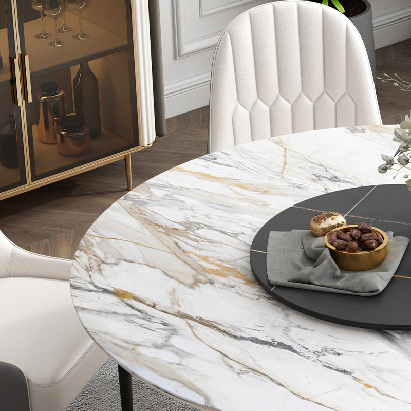 Large Division Horse Bright Light Rock Plate Table Round Light Extravagant High-end White Round Table Ramina Rock Plate Dining Table And Chairs Combination