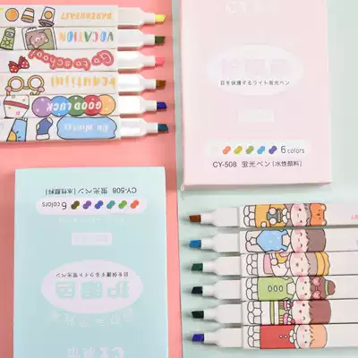 Fluorescent pen box Morandi color light note students with rough key mark pen color soft mark