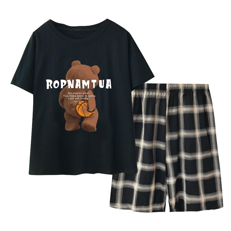 Xinjiang cotton summer pure cotton couple pajamas short-sleeved women's thin suit cute casual can be worn outside men's home clothes