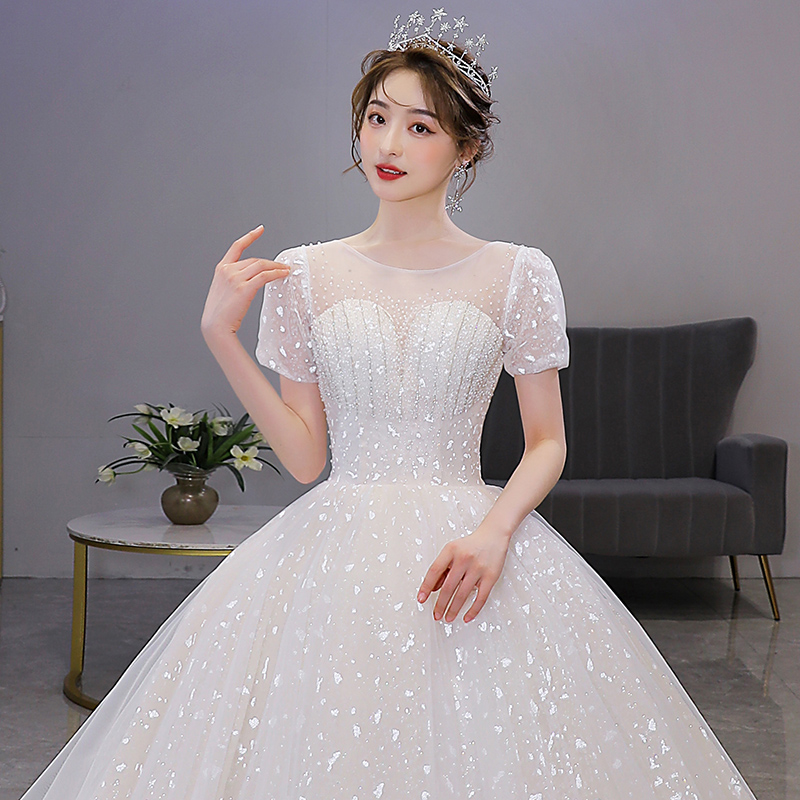 Straight Shoulder Main Wedding Dress 2021 New Temperament Bridal Style Light Trailing High Waist Pregnant Woman Great Size Winter Palace Wind