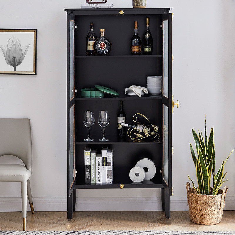 Simple modern retro Changhong glass wine cabinet living room wrought iron dining cabinet French creative porch cabinet storage cabinet