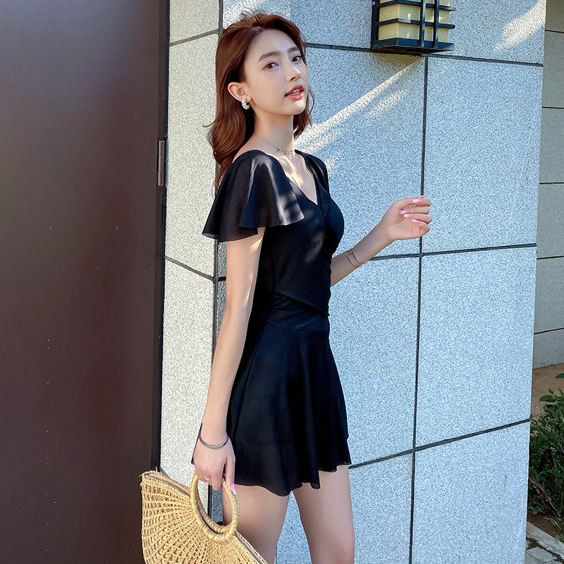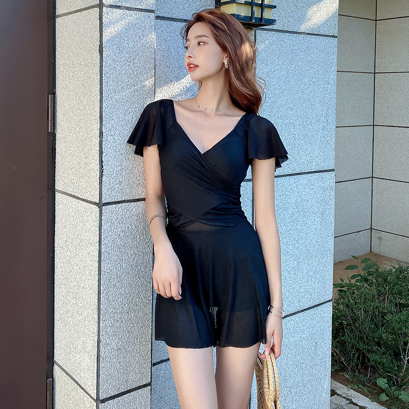 New hot spring swimsuit women conservative boxer dress with steel ring sexy belly cover slim sports large size swimsuit