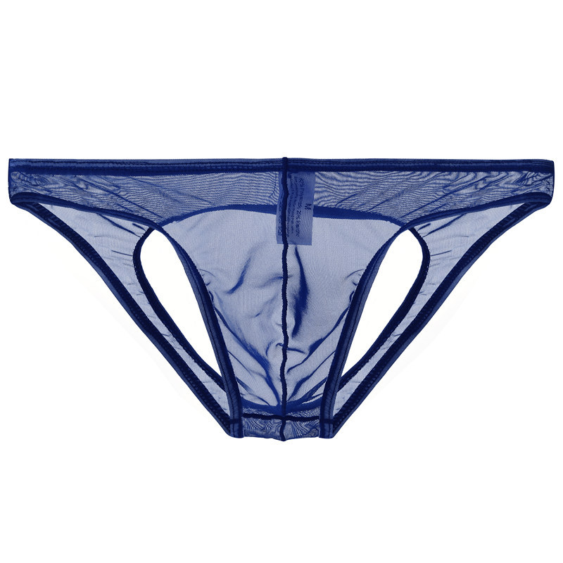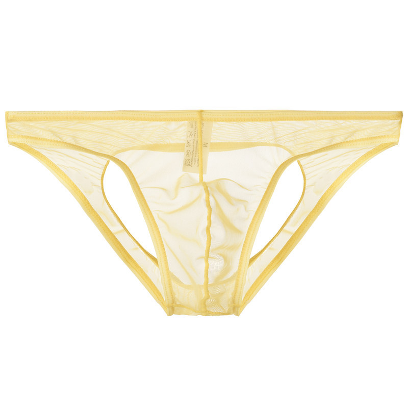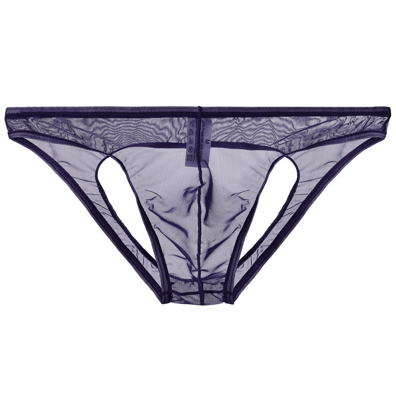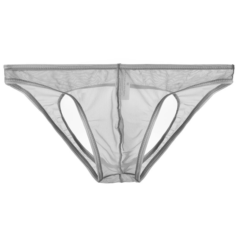 Men's transparent nude underwear mesh gauze leaking butt double thong sexy gay low waist triangle panty thong