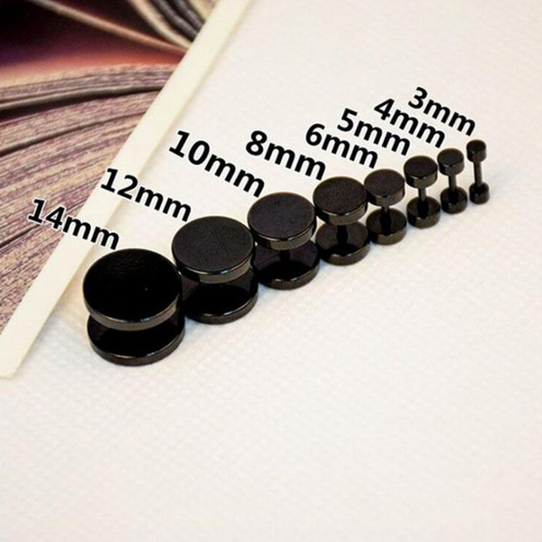 2Pcs Punk Black Unisex Stud Earring Barbell Piercing Earring