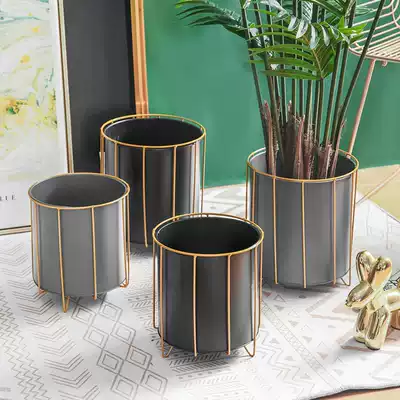Net red and black white flowerpot simple large extra large living room ins Nordic round flower stand floor iron landing