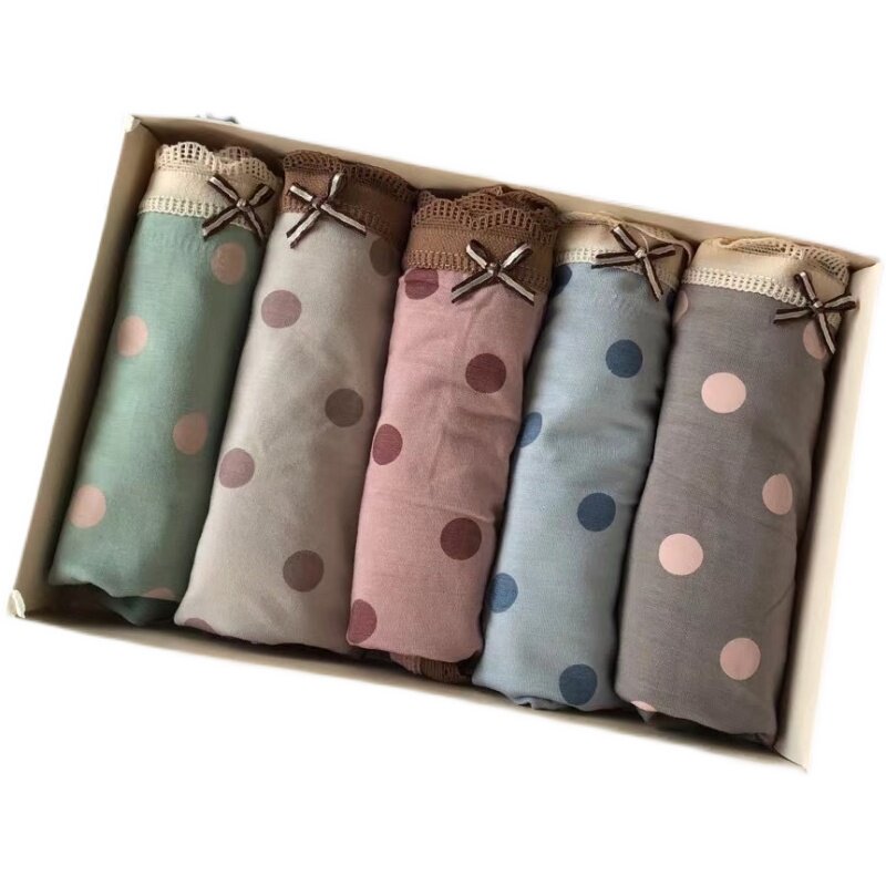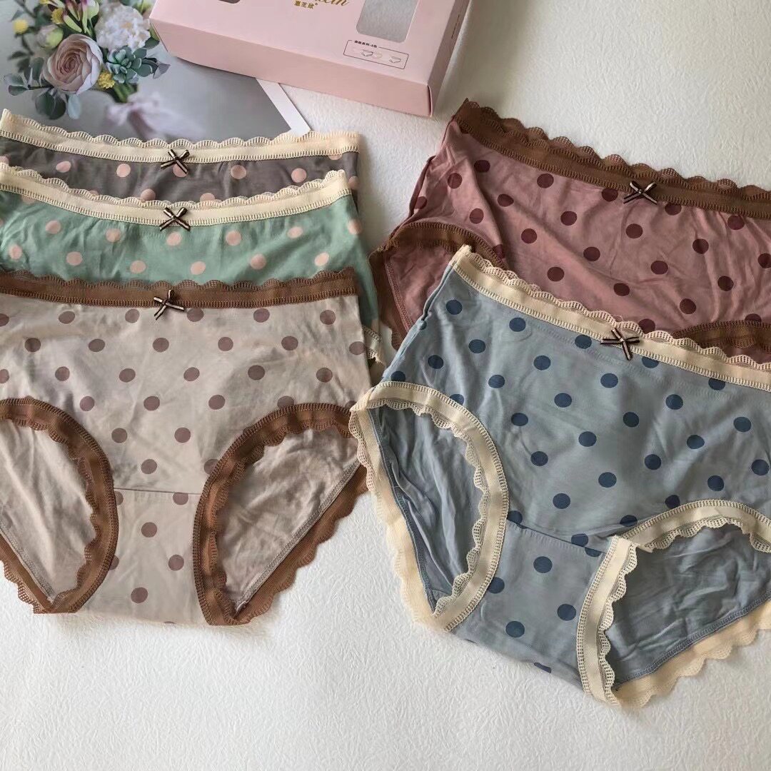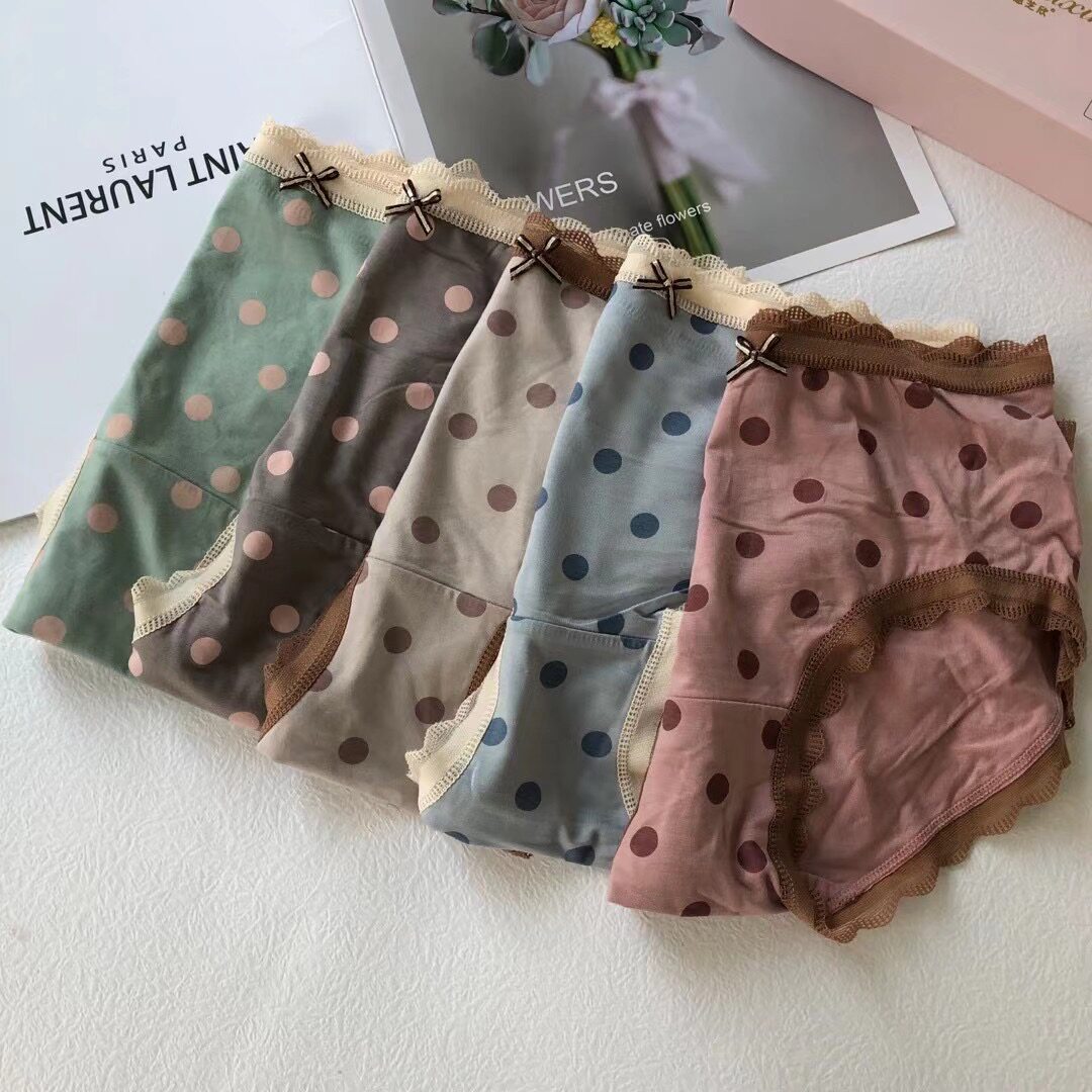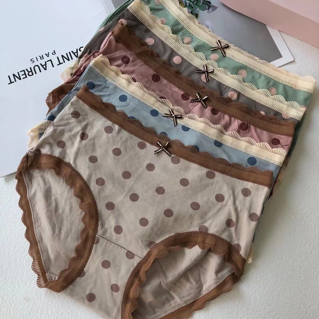 5 Dress Round Points Day Tie Wave Dot Sweetness Print Safety Pants Buns Hip Sexy Antibacterial Breathable Triangle Pants Mid Waist Underpants