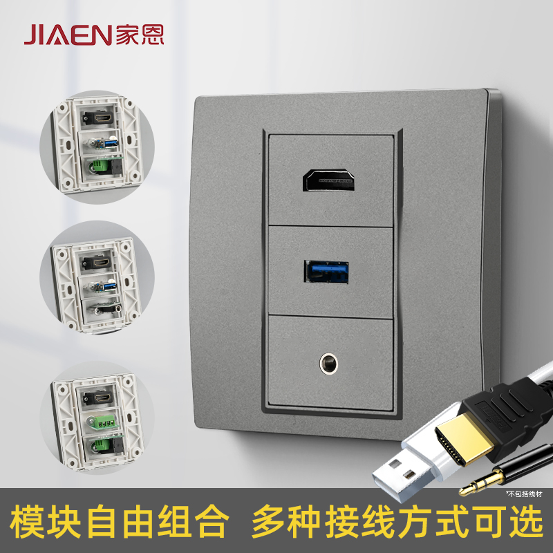 Wall Multimedia 4K HD HDMI Panel 3.5 Headphone Audio USB Data Cable Docking Interface Socket Panel