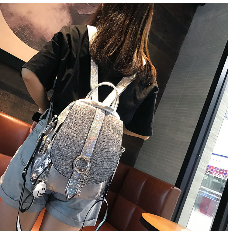 2021 new fashion brand leather back backpack female diamond-set tassel fashion women's backpack women's bag dual-use oblique cross bag female