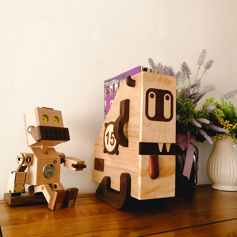 Handmade original design Small monsters Desktop containing box File shelve solid wood Creative Finishing Document Basket