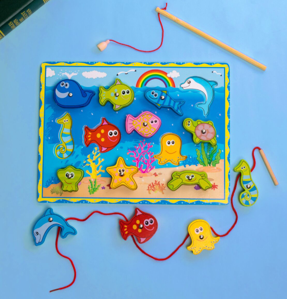 Children's baby magnetic fishing toys three-dimensional puzzle matching threading building blocks children's educational toys mixed batch