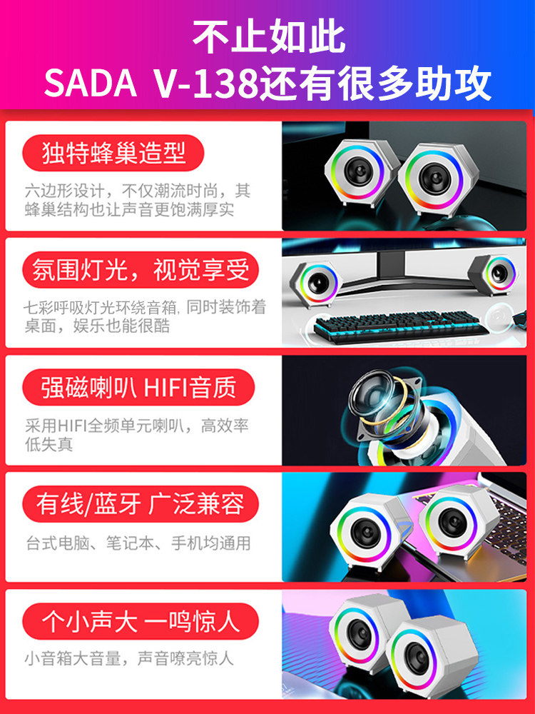 Computer audio desktop notebook home small speaker wired mini subwoofer usb game mobile phone small speaker desktop colorful light active influence speaker