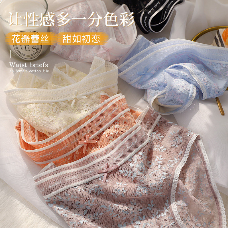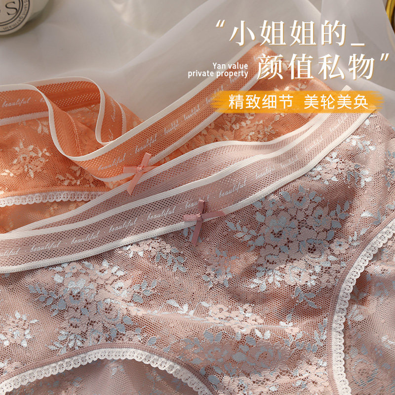 For Muri girl lace underwear female ice silk pure cotton crotch seamless breathable summer ladies thin triangle shorts