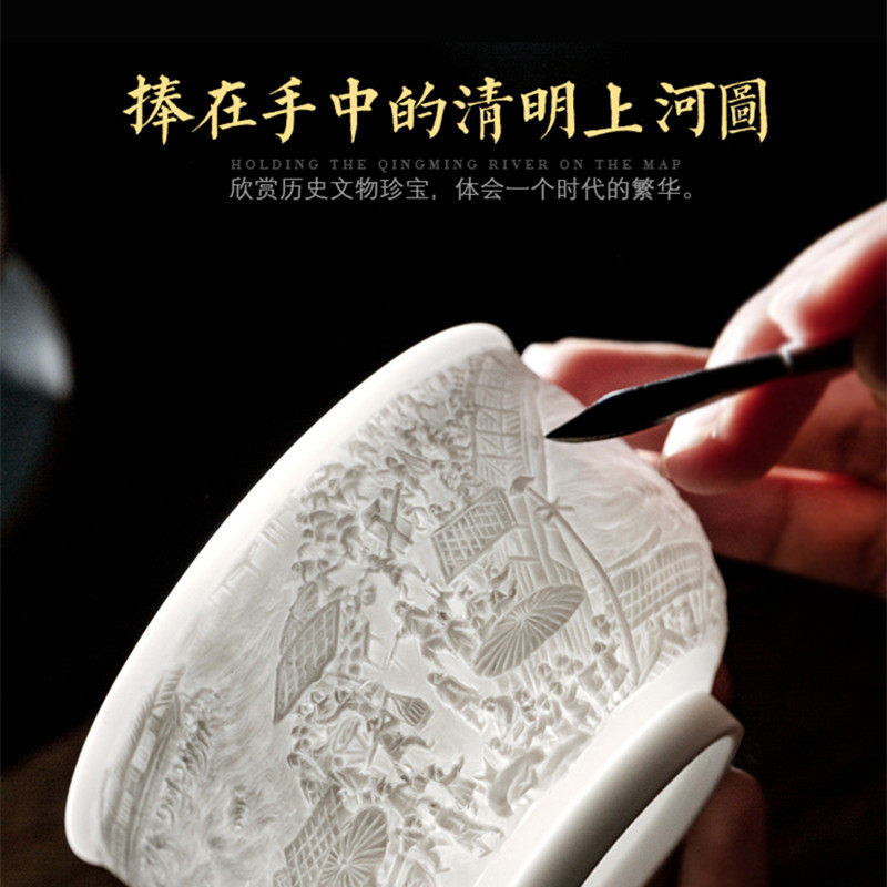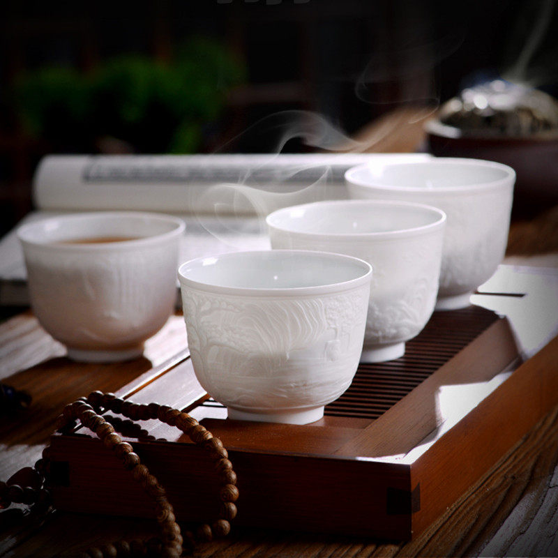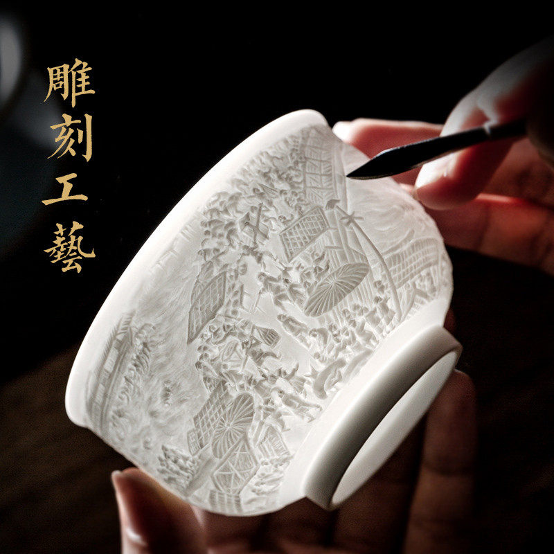 Full-hand hand-painted engraving owner's cup Jingdezhen Ceramic Gongfu Tea Cup Drinking Cup Raw Xiao Cup Single Cup Small Tea Bowl