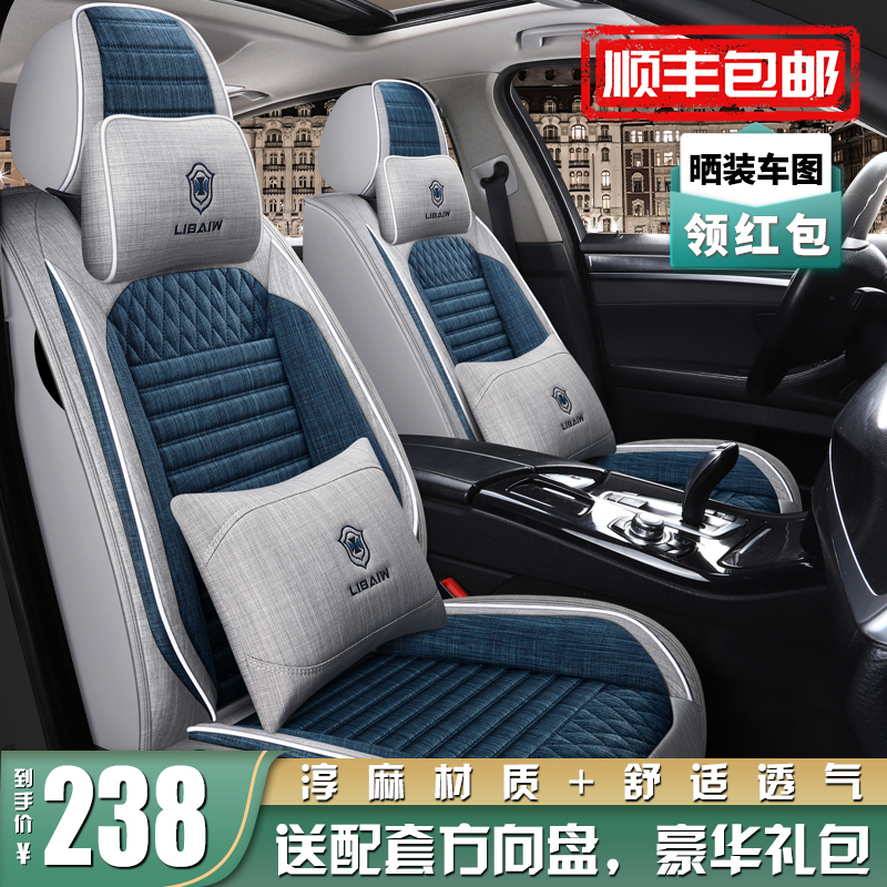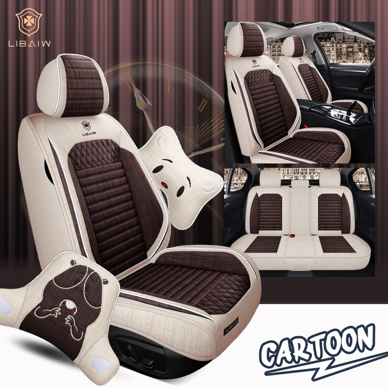 Car seat cover all-inclusive 21 new linen four-season universal fabric seat cushion cartoon cotton and linen breathable free leather seat cushion