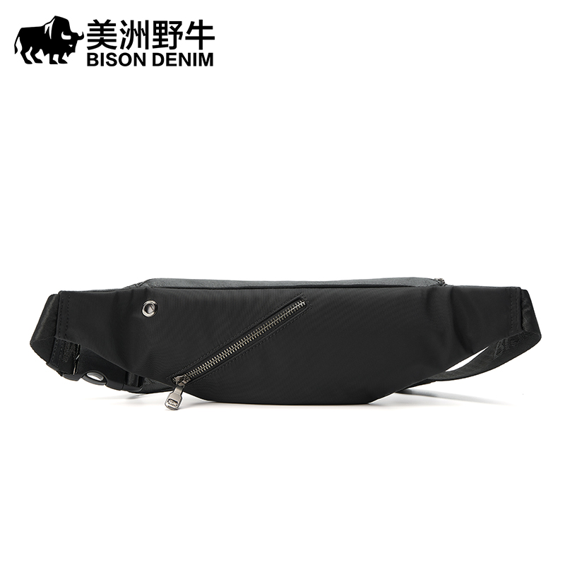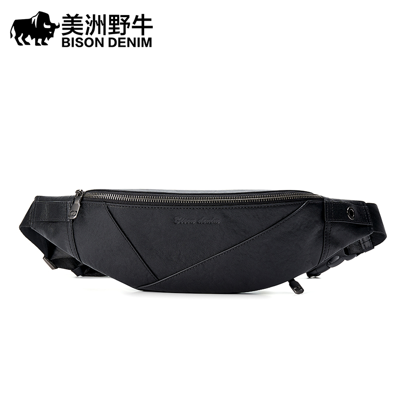 American bison fashion waist bag men's one-shoulder messenger chest bag sports and leisure black leather large-capacity small backpack