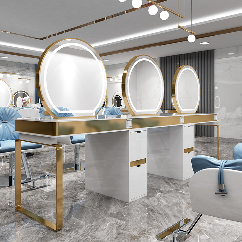 Light luxury high-end hair gallery with lamp hairdresser stainless steel European lens photo gallery cosmetic mirror