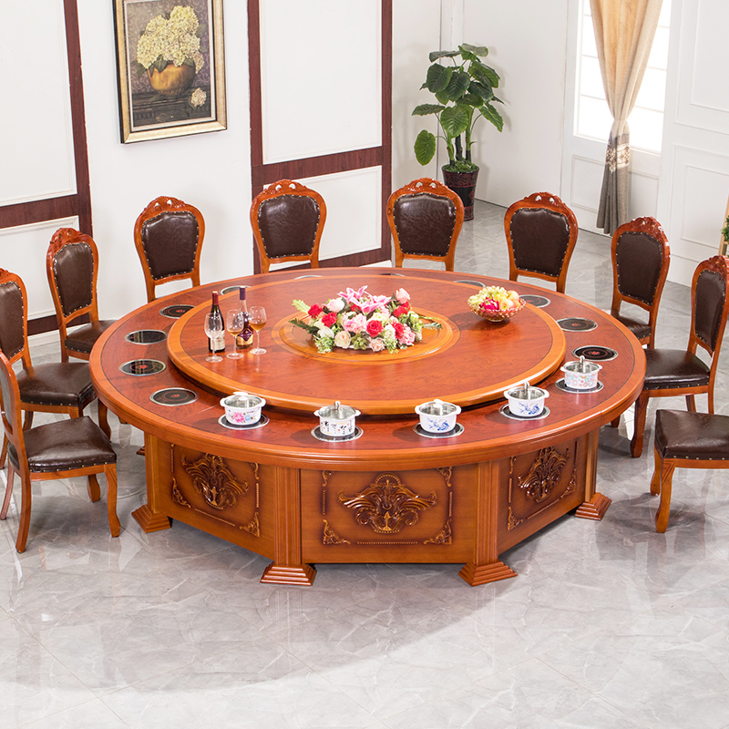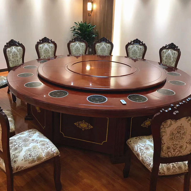 Hot pot table induction cooker one person one pot small hot pot commercial 15 people 20 electric large round table solid wood dining table