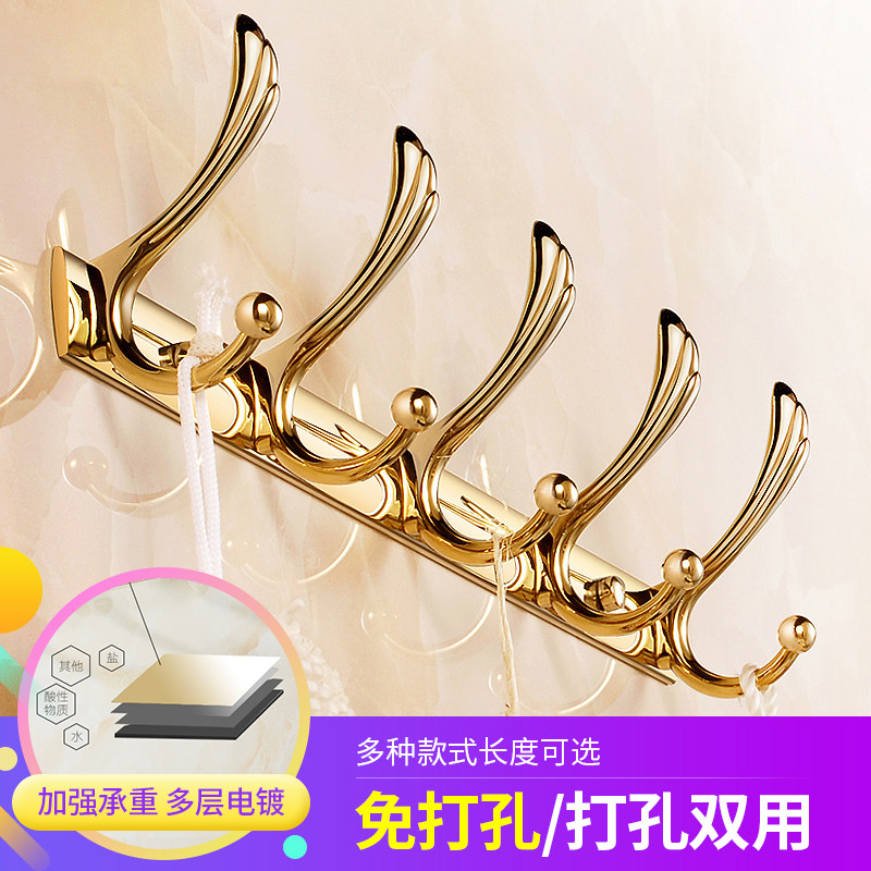 Punch-free coat hook coat and hat hanger light luxury powder room row hook shower room rack rose gold punch-free
