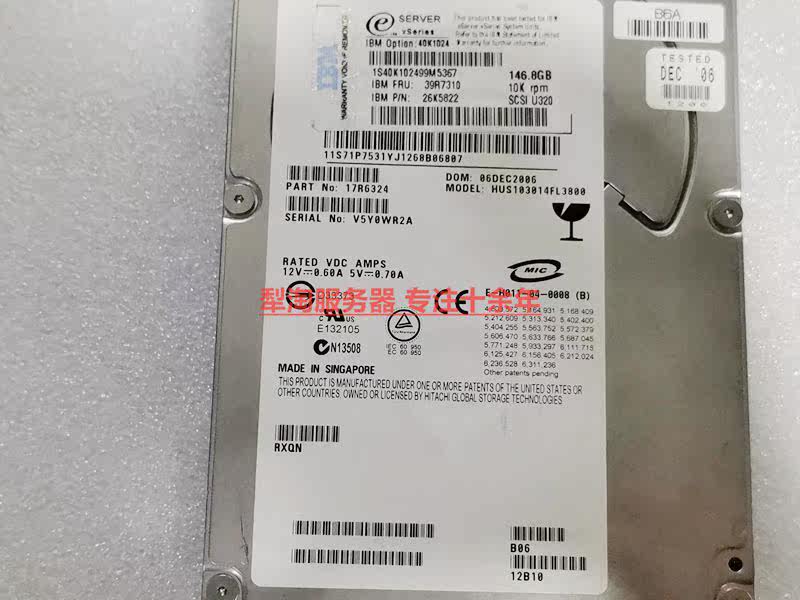 IBM 40K1024 39R7310 26K5822 146 8GB 10K SCSI server harddisc U320