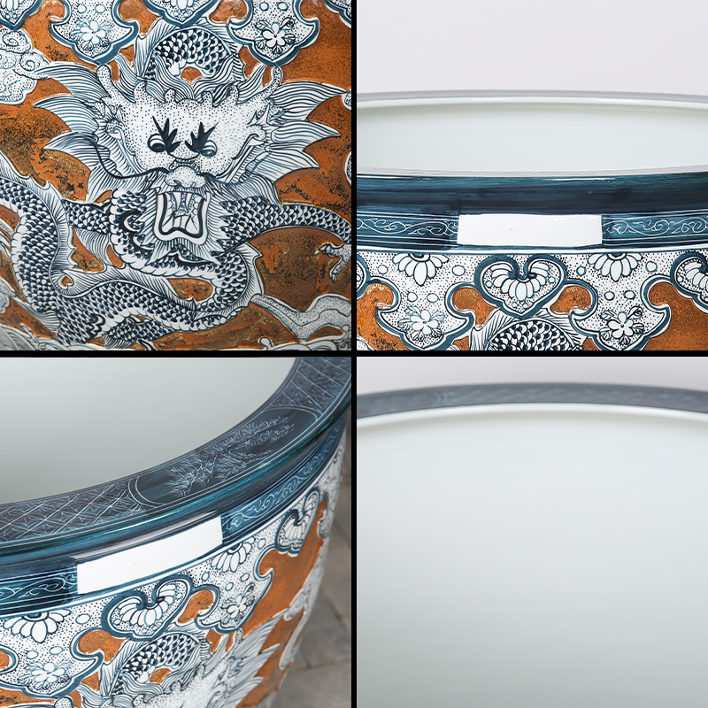 Jingdezhen ceramic large cylinder Carved dragon pattern courtyard Town house Feng Shui water lily lotus Outdoor household balcony Antique cylinder