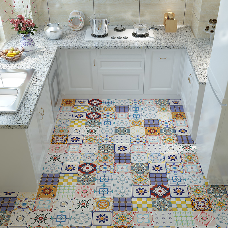 Kitchen floor stickers self-adhesive waterproof non-slip toilet bathroom powder room tile floor cover ugly refurbished floor stickers