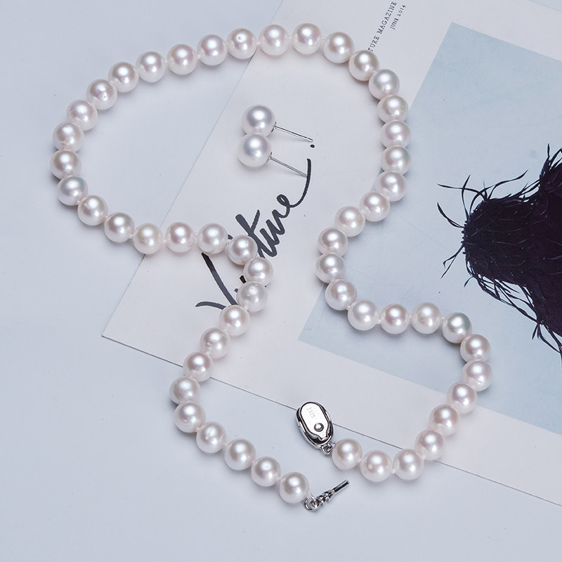 Freshwater Pearl Necklace S925 silver Zhengyuan Round light 9-10mm Mom chain string Pearl Mother's Day to send in mother-in-law