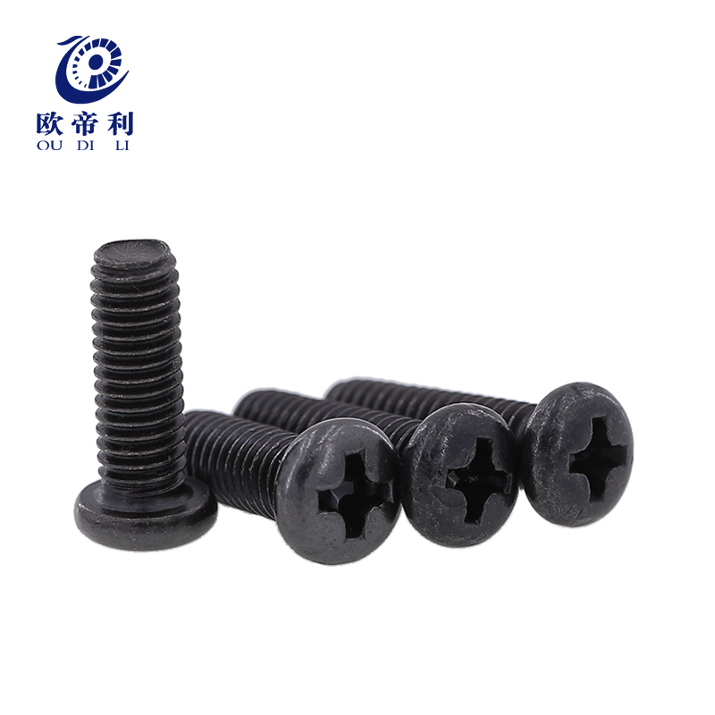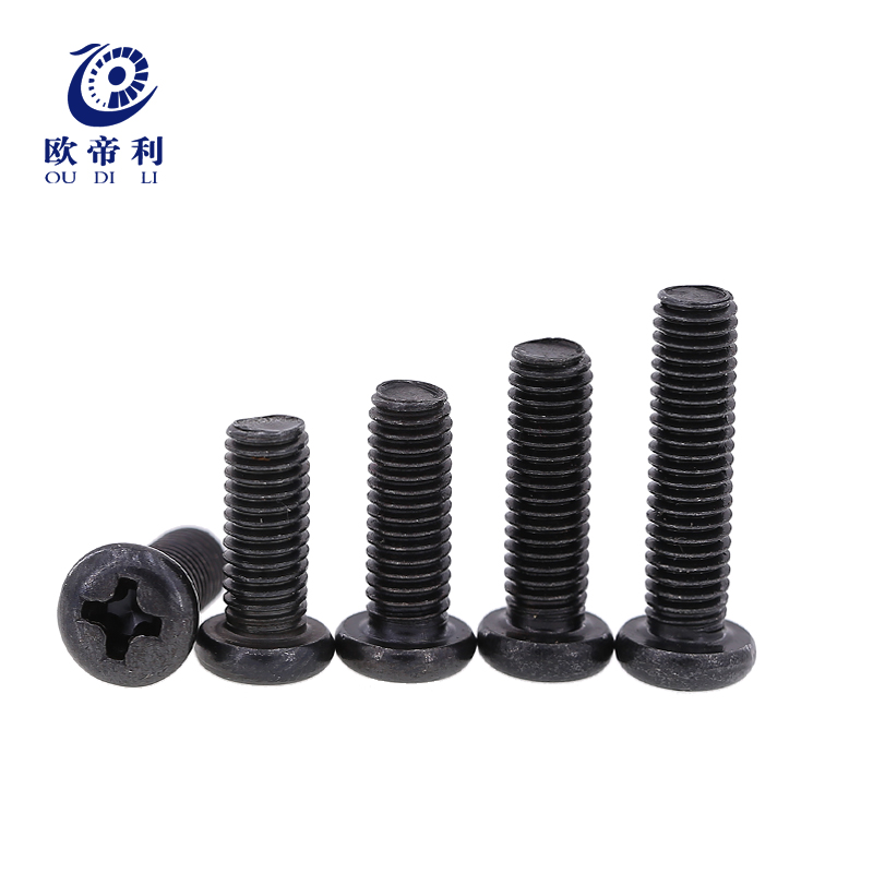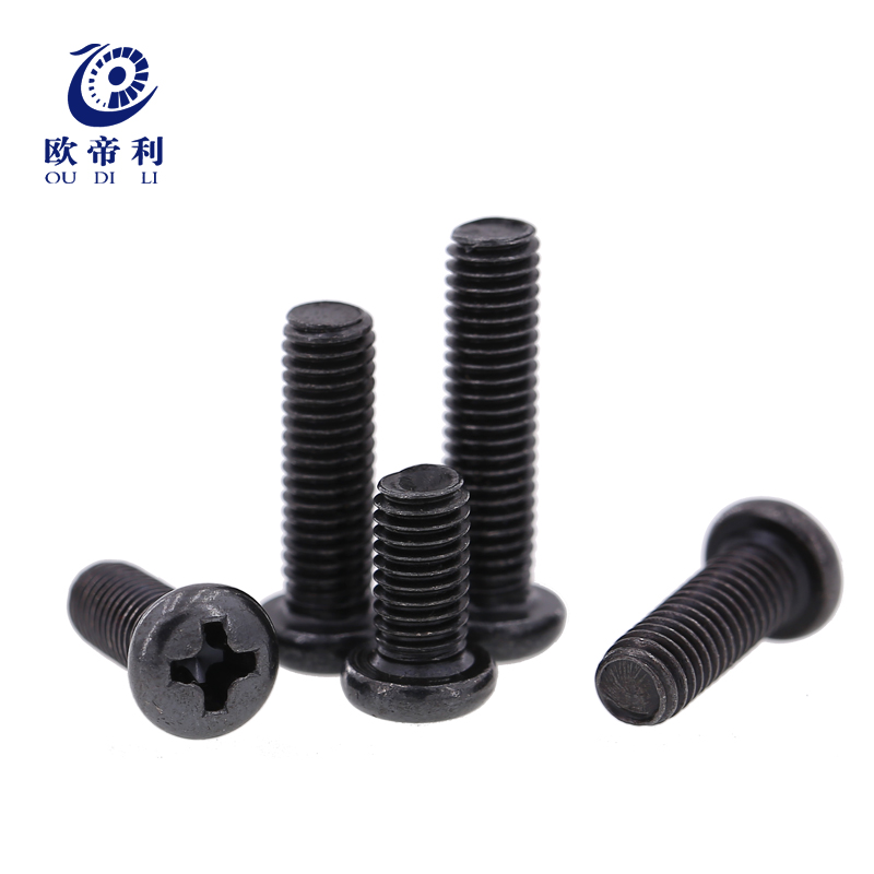 PM black cross round head screw Pan head machine tooth screw Flat round head black screw extension M3M4M5M6