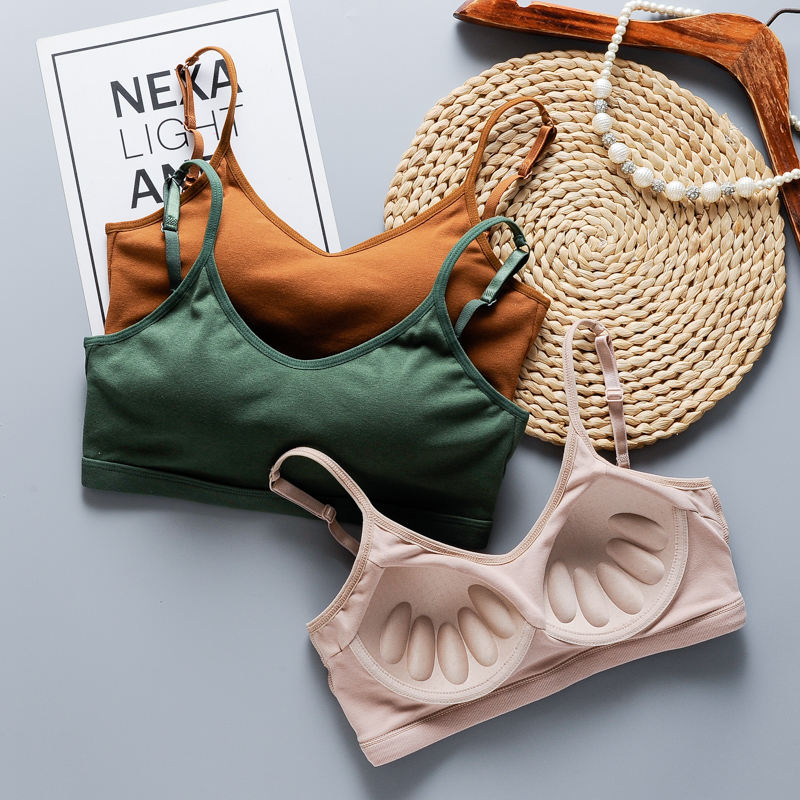 One-piece row buckle No steel ring Beauty back underwear Wrapped Breast Girl Student Thickening Fixed Chest Cushion Poly Sling Bra