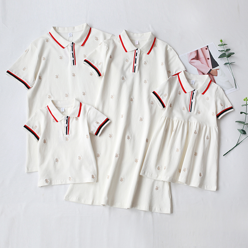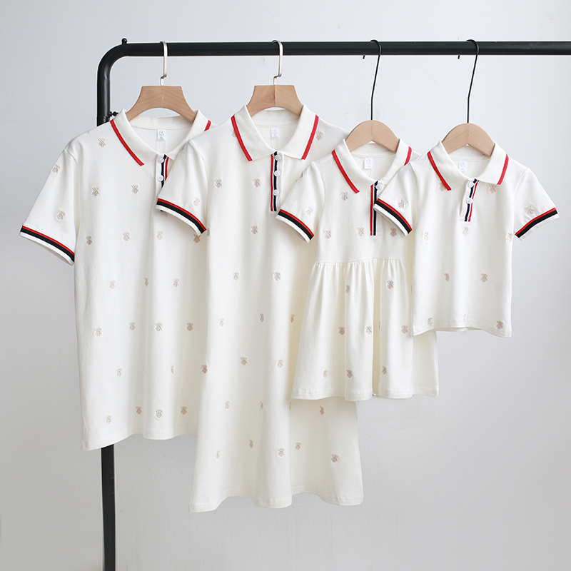 South Korean parents dress a three-member family, four-member family, mother and child summer dress polo dress