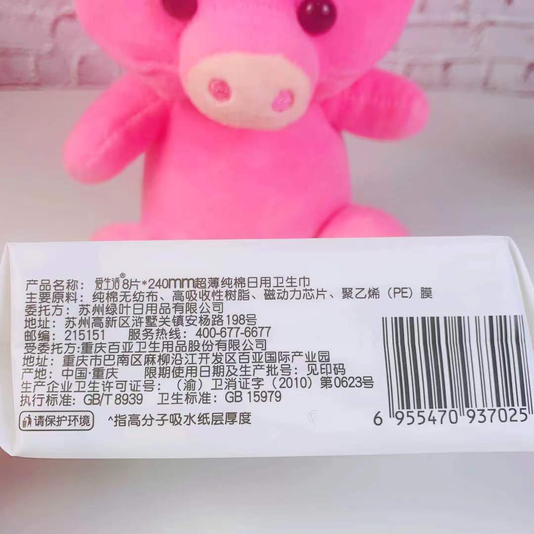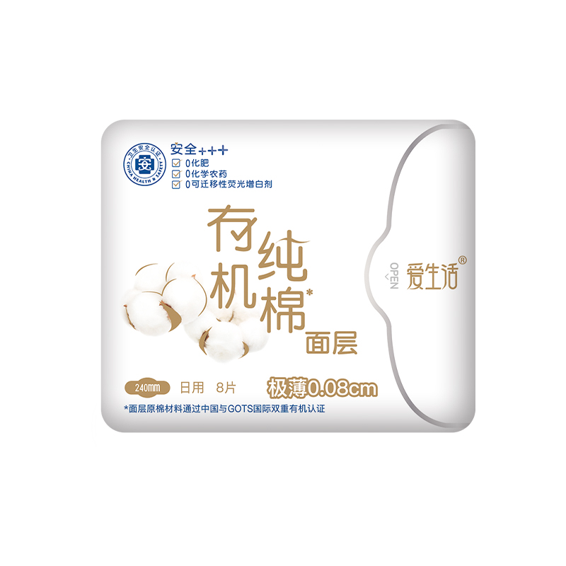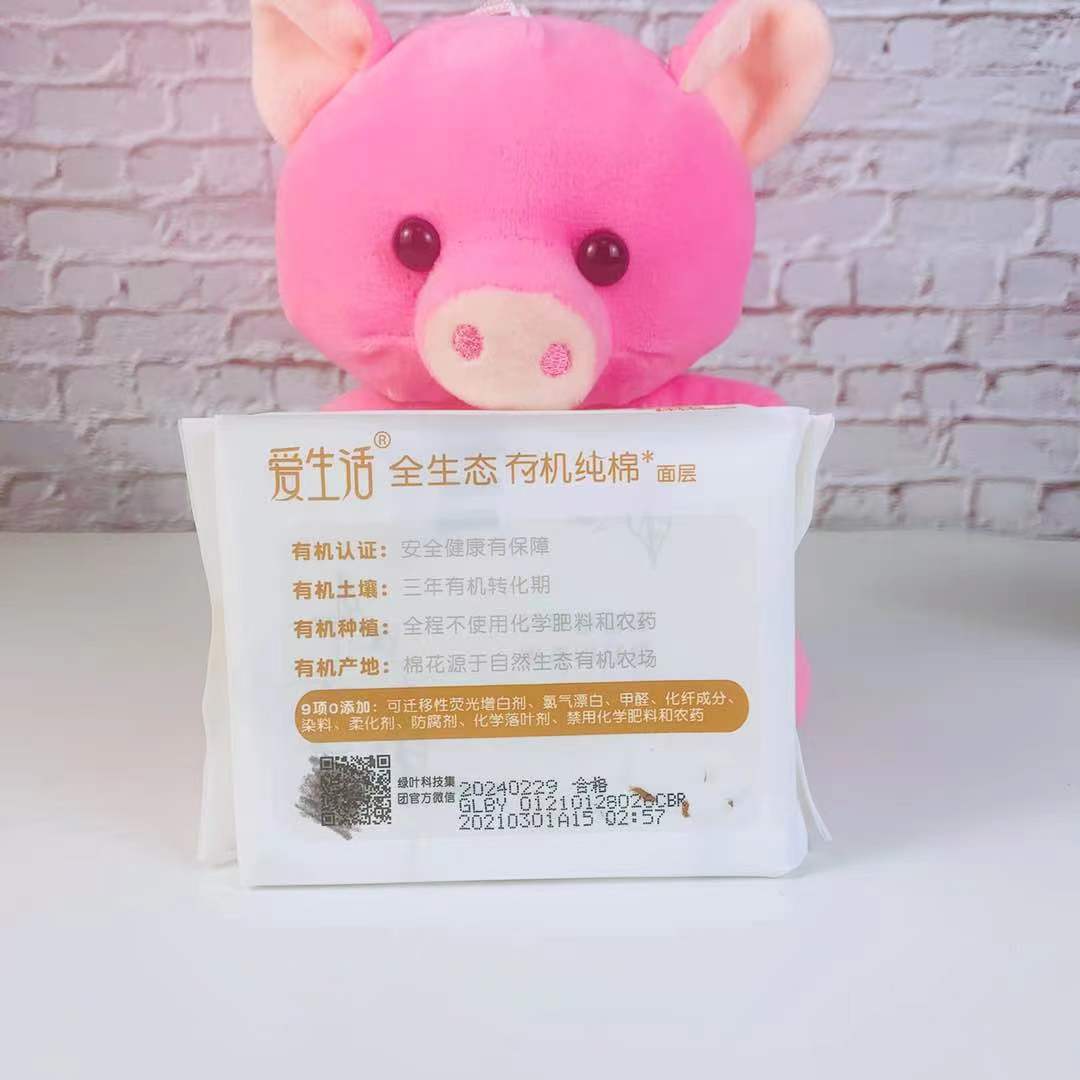 Green Leaf Love Life Organic Pure Cotton Daily Sanitary Cotton 8 Pieces 240mm Ultra Thin Breathable Negative Ion No Fluorescent